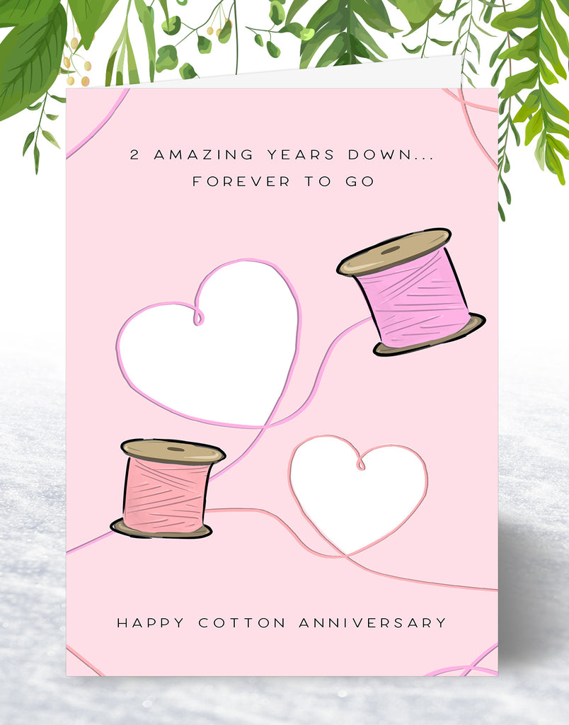 2nd Anniversary Card - Cotton Wedding Anniversary Card - A5 Size Card with Grey Envelope