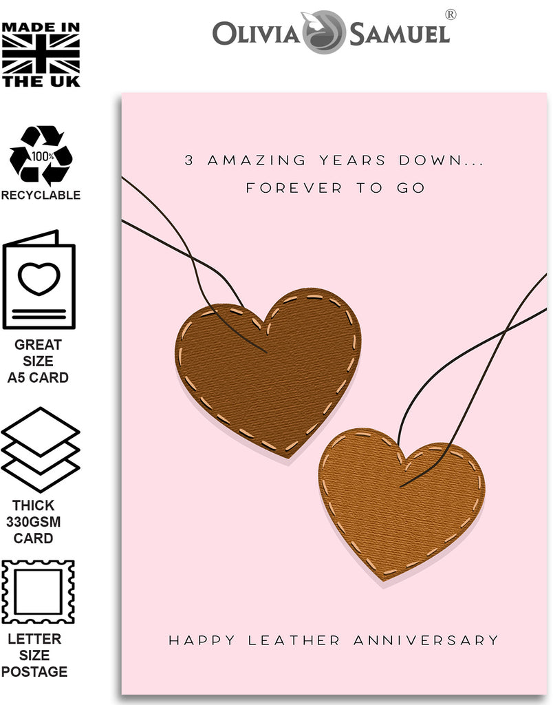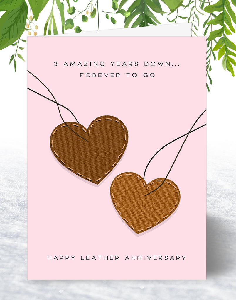 3rd Anniversary Card - Leather Wedding Anniversary Card - A5 Size Card with Grey Envelope is backordered and will ship as soon as it is back in stock.