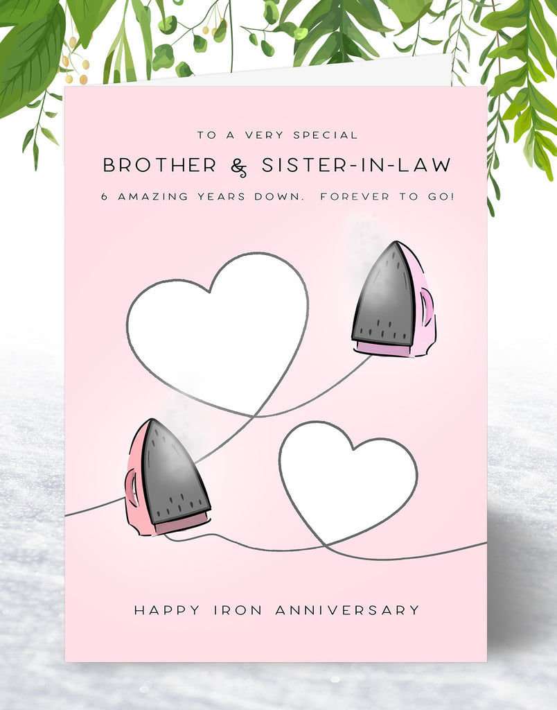 • BROTHER & SISTER-IN-LAW 6 YEAR ANNIVERSARY CARD ⭐ Iron Hearts Design featuring an original Tom Price illustration.⭐ Click the second image for the text inside the card.