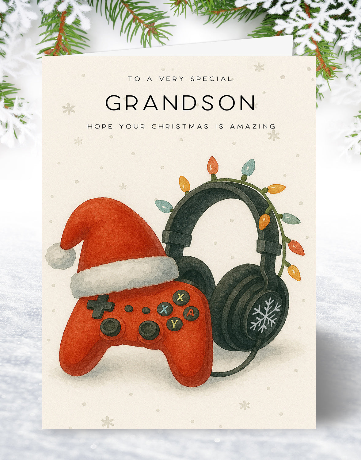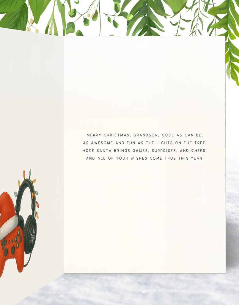 Grandson Christmas Card - Gaming Controller Design - A5 Size Card with Gold Envelope is backordered and will ship as soon as it is back in stock.