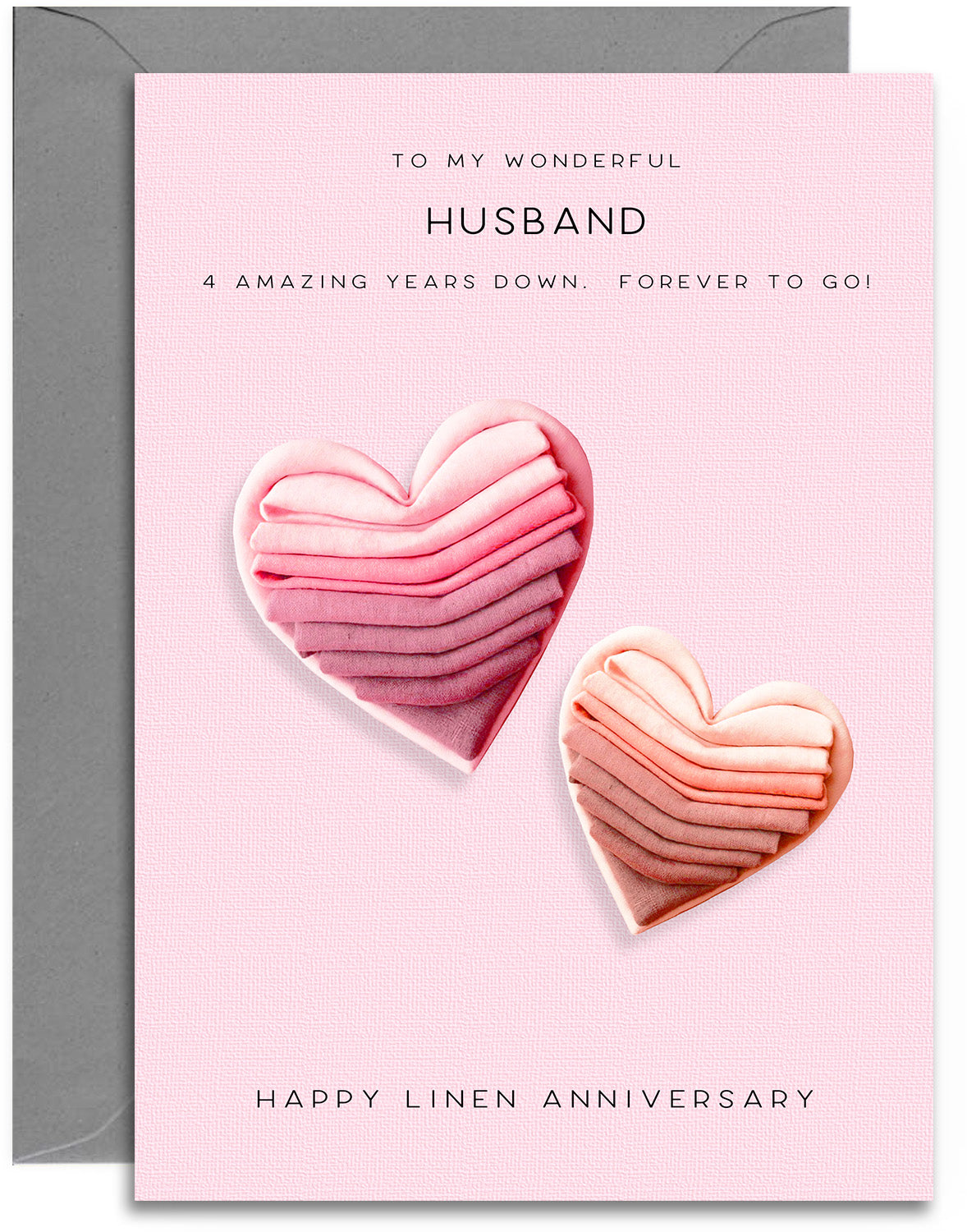 Husband 4th Anniversary Card - Linen Wedding Anniversary Card - Linen Hearts Design - A5 Size Card with Grey Envelope