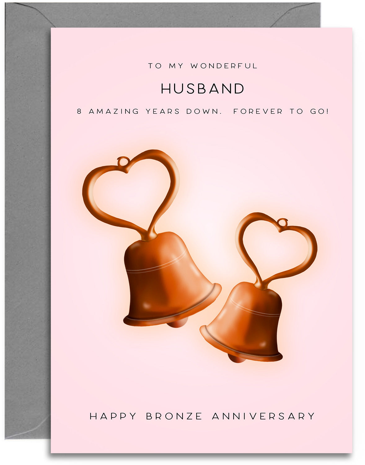 Husband 8th Anniversary Card - Bronze Wedding Anniversary Card - Bronze Hearts Design - A5 Size Card with Grey Envelope