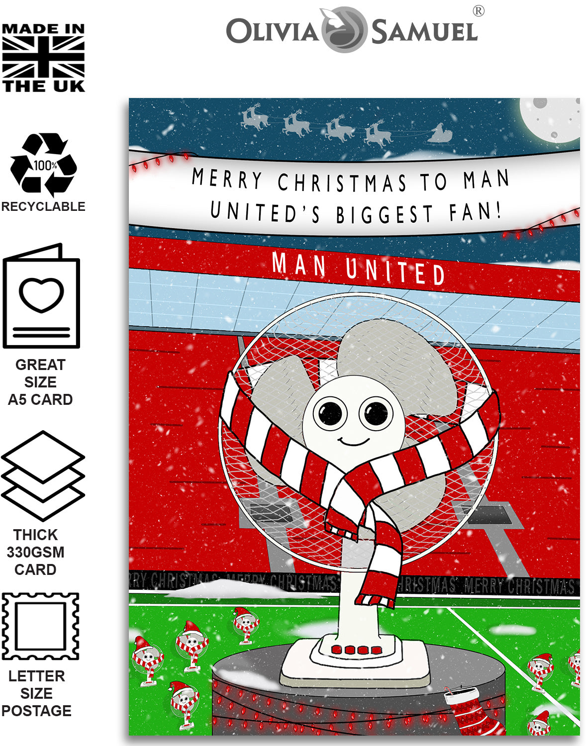 Man Utd Football Christmas Card - A5 Sized Card (148mm x 210mm) with Grey Envelope. Designed and Printed in the UK