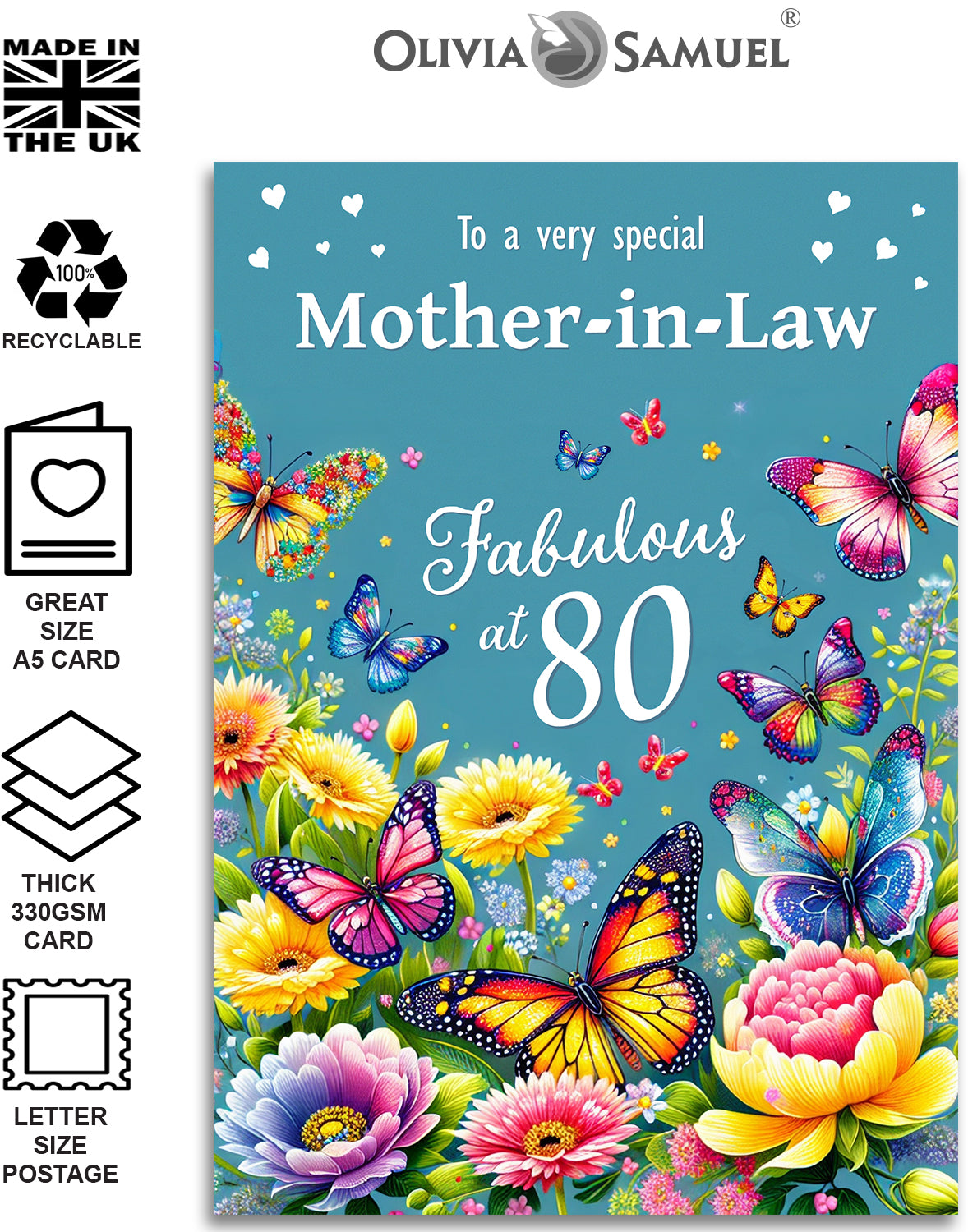• MOTHER-IN-LAW 80TH BIRTHDAY CARD ⭐ Pretty Butterflies and Flowers Design ⭐ Click the second image for the text inside the card.