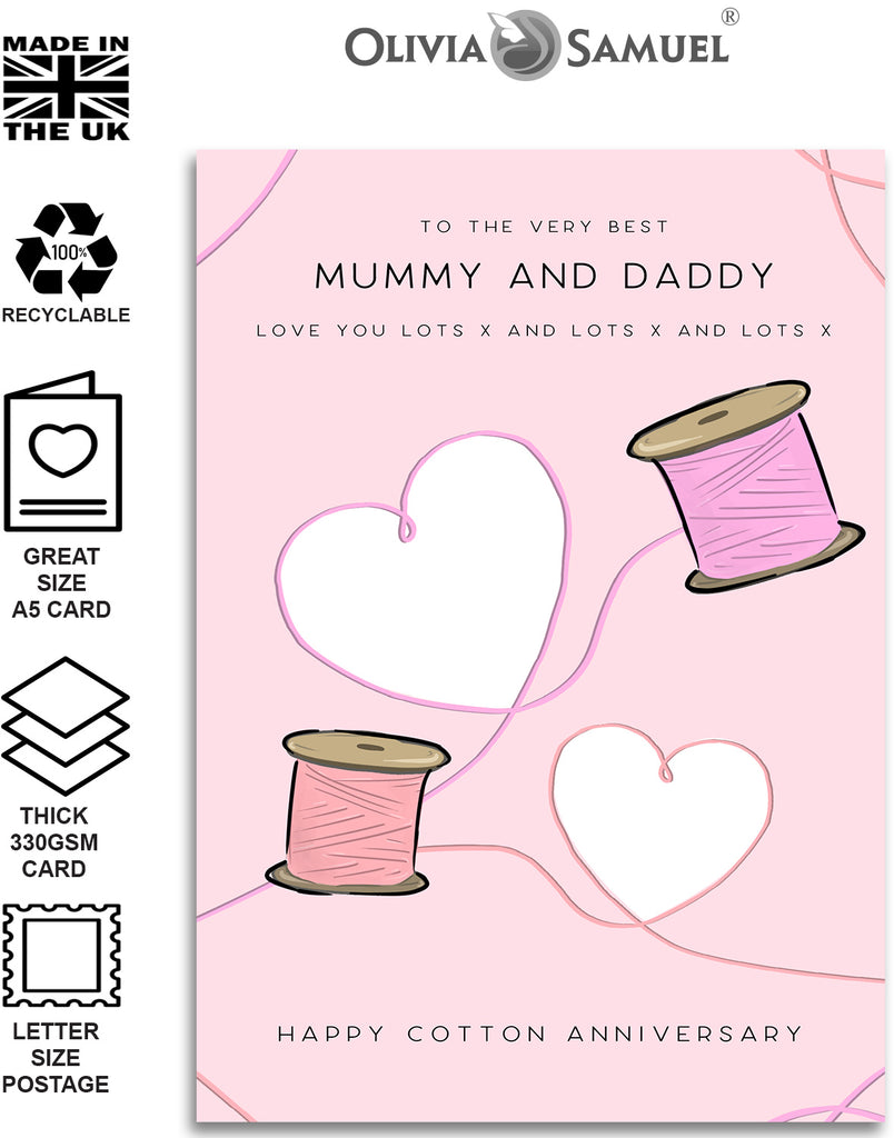 MUMMY & DADDY 2 YEAR ANNIVERSARY CARD ⭐ Cotton Reels Design featuring an original Tom Price illustration.⭐ Click the second image for the text inside the card.