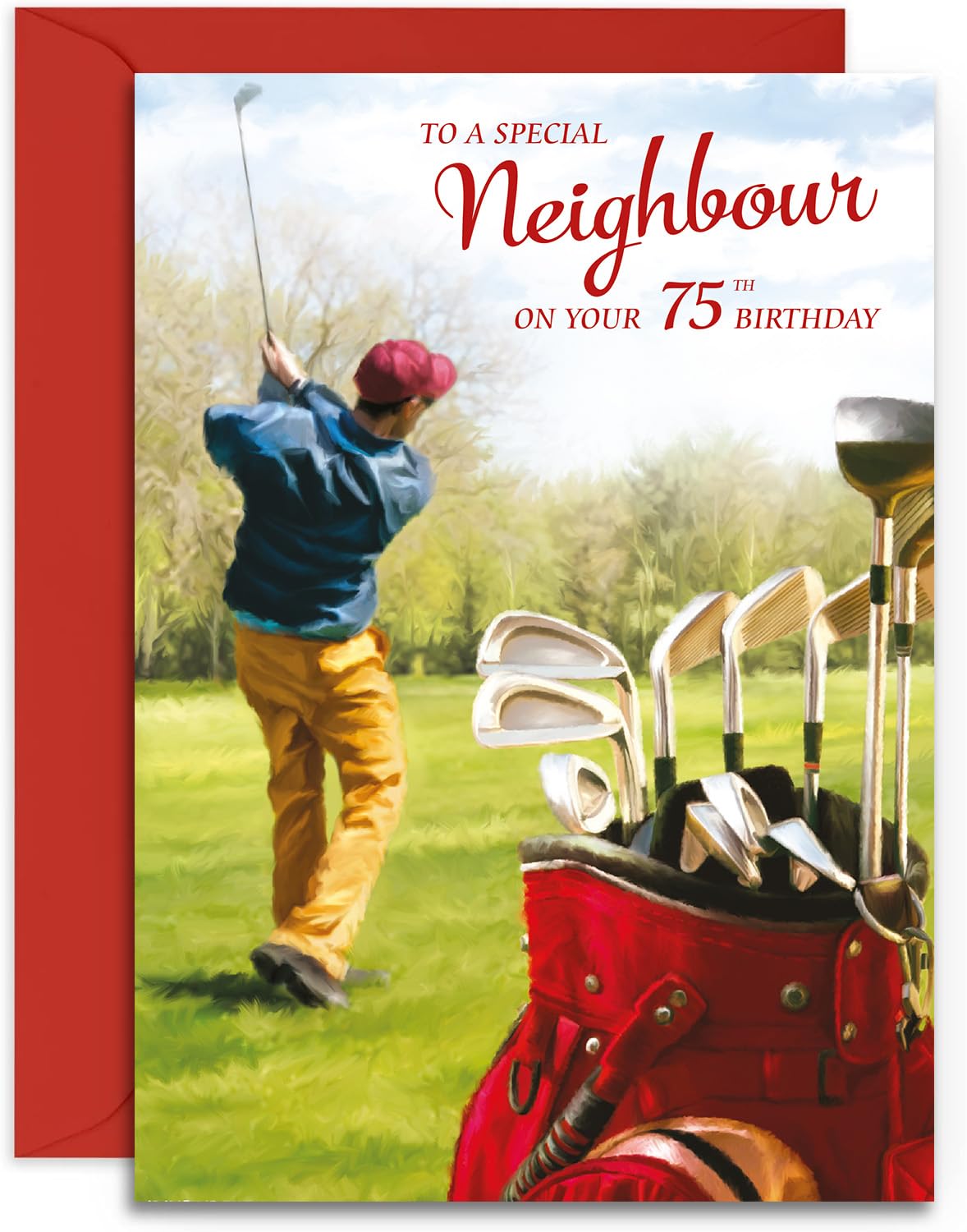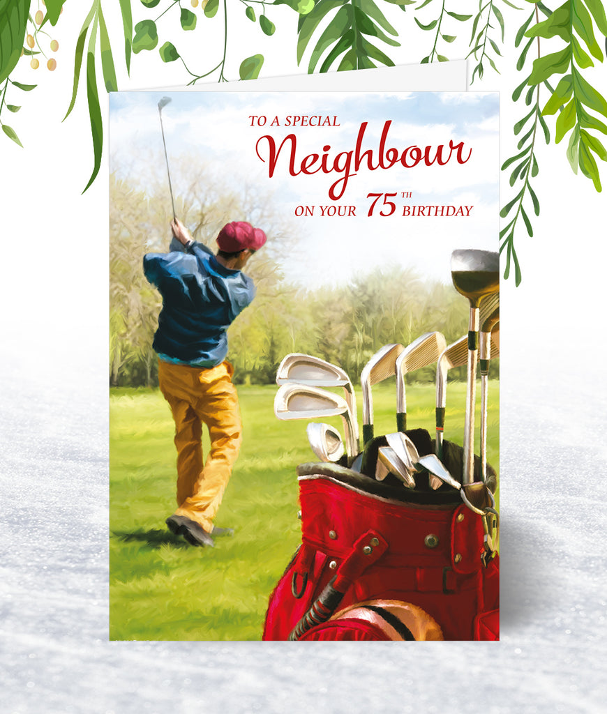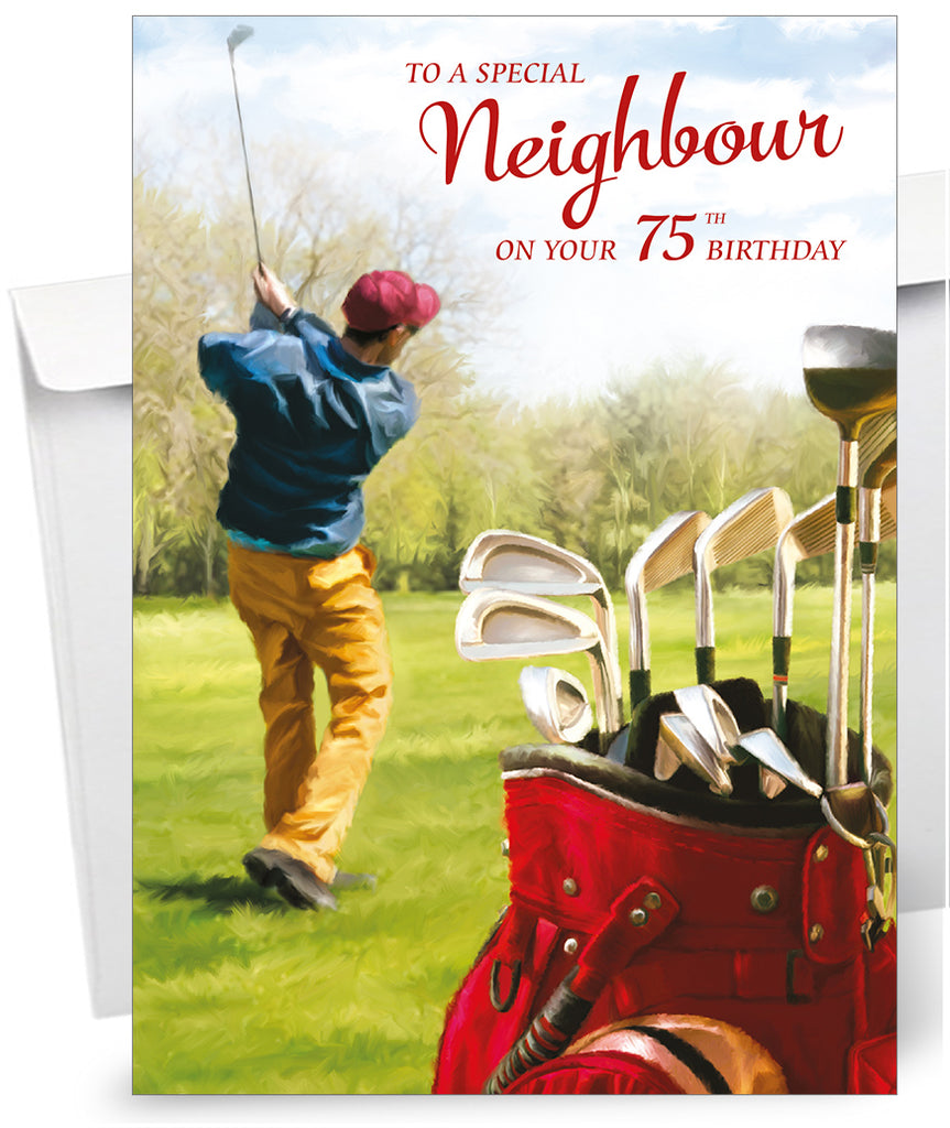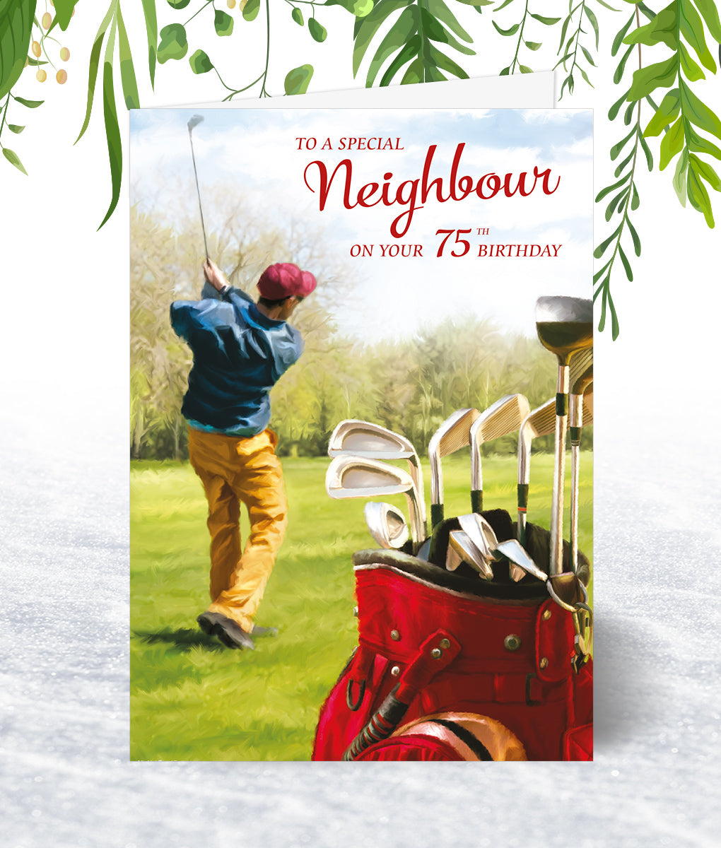 Neighbour 75th Golf Birthday Card from Olivia Samuel - Medium Sized Card (A5 Size -148mm x 210mm) with Envelope