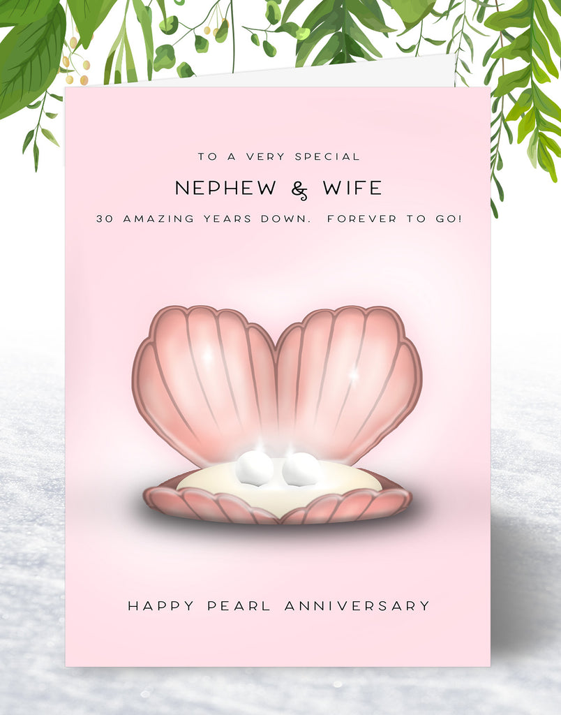 Nephew & Wife 30th Anniversary Card - Pearl Wedding Anniversary Card - Pearl Hearts Design - A5 Size Card with Grey Envelope is backordered and will ship as soon as it is back in stock.