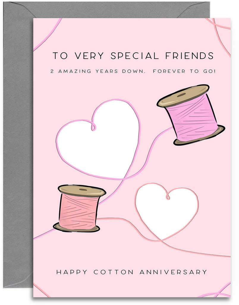 Special Friends 2nd Anniversary Card - Cotton Wedding Anniversary Card - Cotton Reels Design - A5 Size Card with Grey Envelope