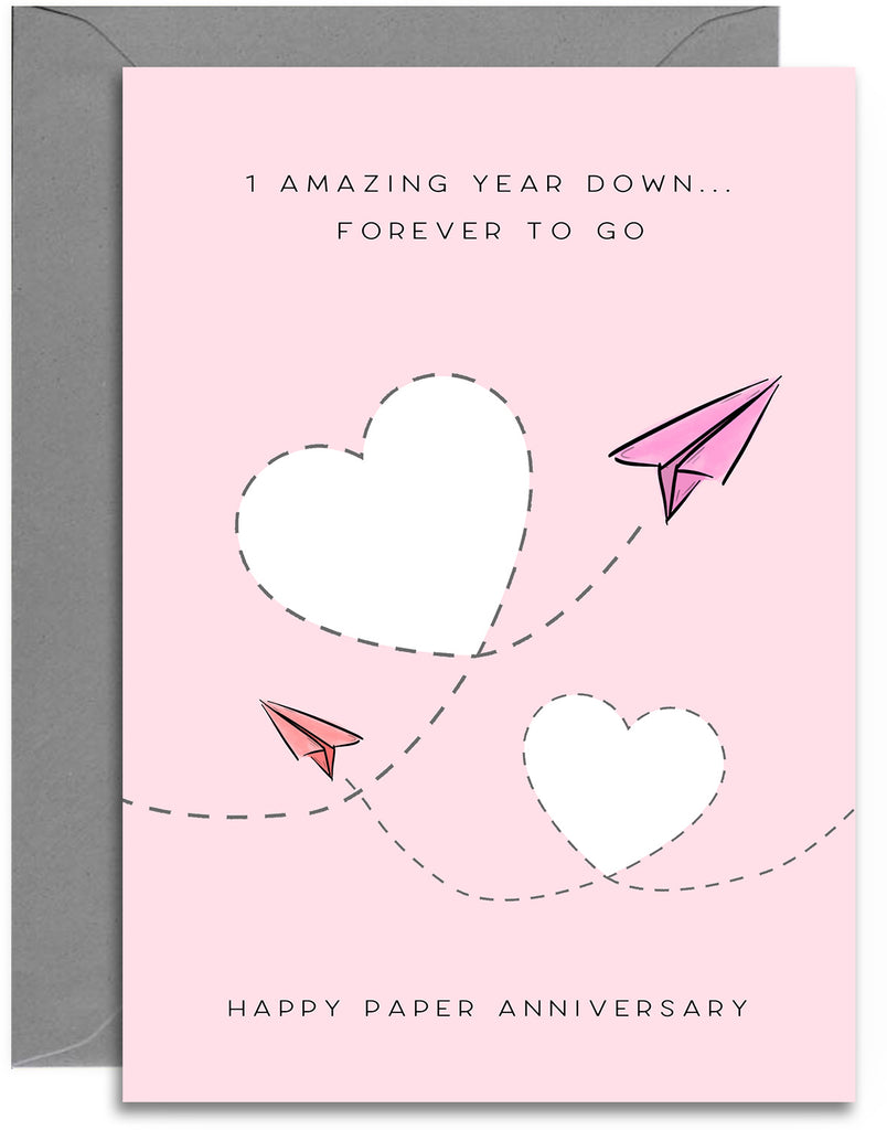1st Anniversary Card - Paper Wedding Anniversary Card - A5 Size Card with Grey Envelope