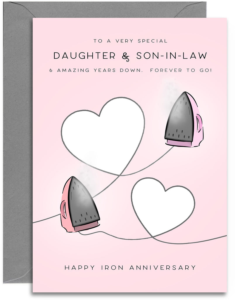 Daughter & Son-in-Law 6th Anniversary Card - Iron Wedding Anniversary Card - Iron Hearts Design - A5 Size Card with Grey Envelope