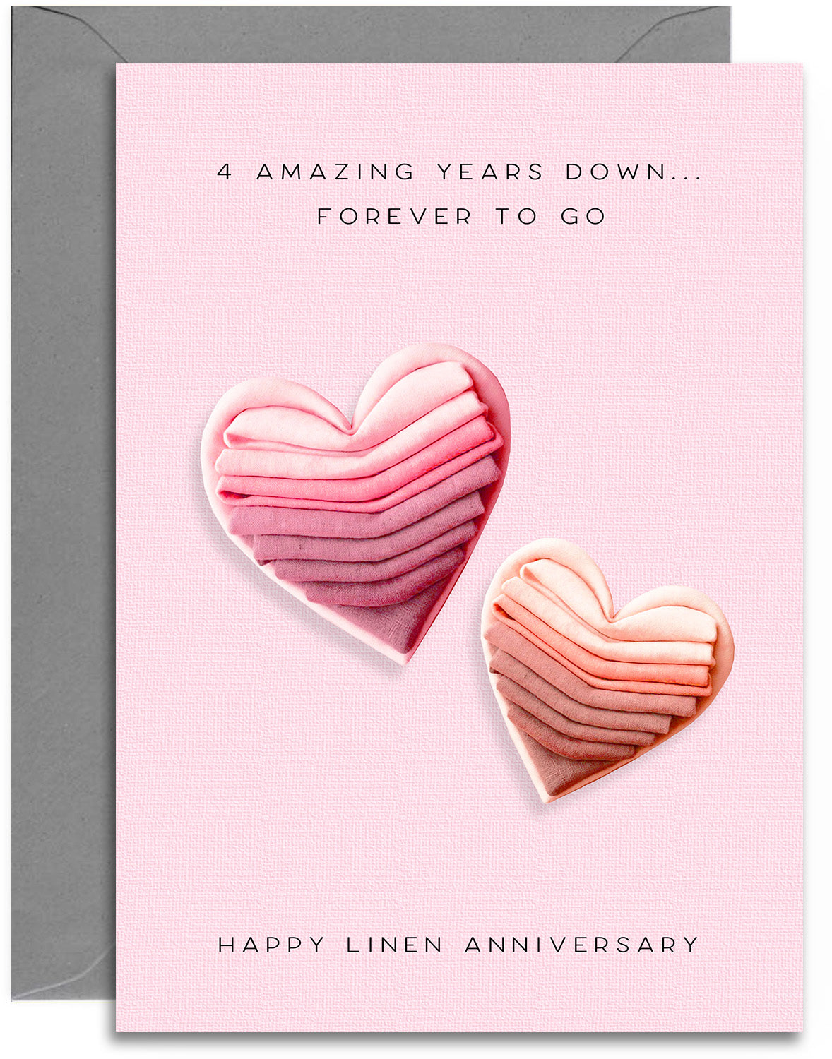 4th Anniversary Card - Linen Wedding Anniversary Card - A5 Size Card with Grey Envelope is backordered and will ship as soon as it is back in stock.