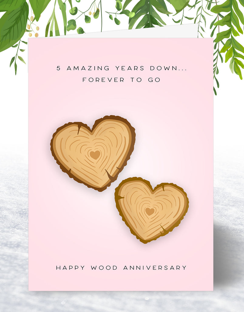 5th Anniversary Card - Wood Wedding Anniversary Card - A5 Size Card with Grey Envelope