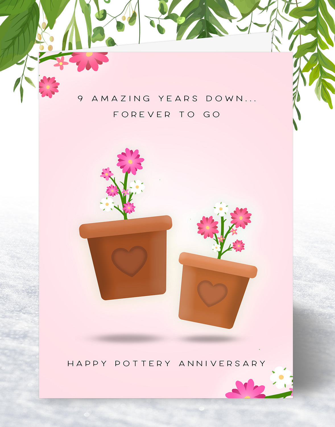 9th Anniversary Card - Pottery Wedding Anniversary Card - A5 Size Card with Grey Envelope