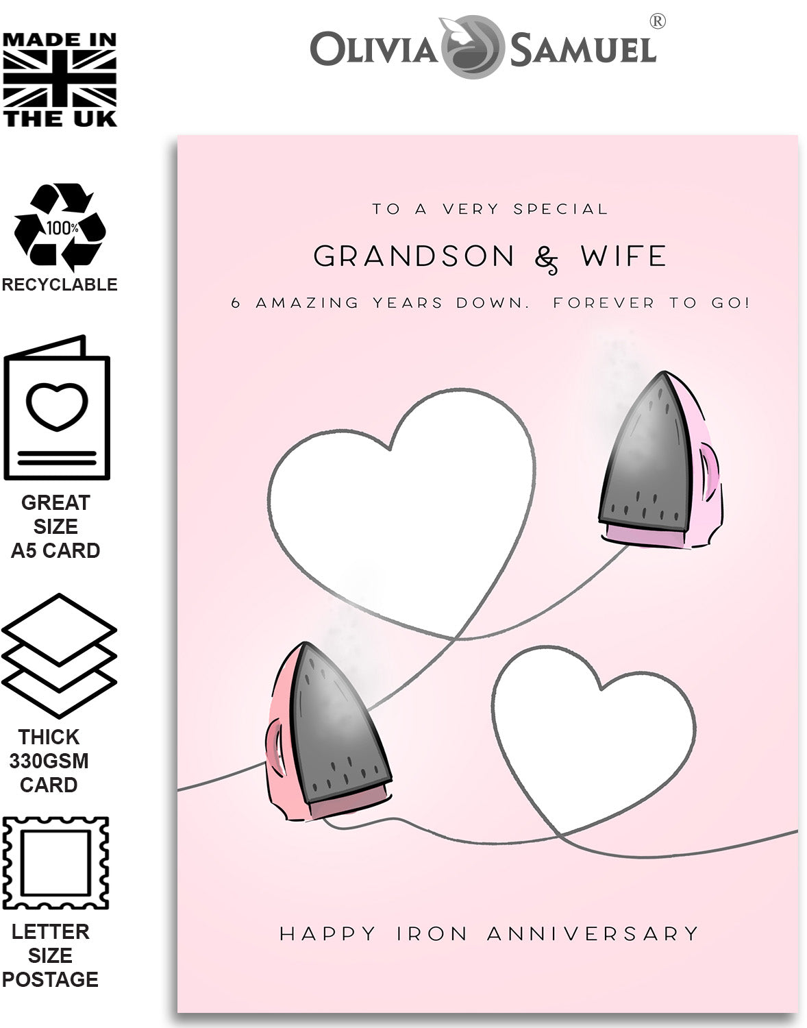 GRANDSON & WIFE 6 YEAR ANNIVERSARY CARD ⭐ Iron Hearts Design featuring an original Tom Price illustration.⭐ Click the second image for the text inside the card.