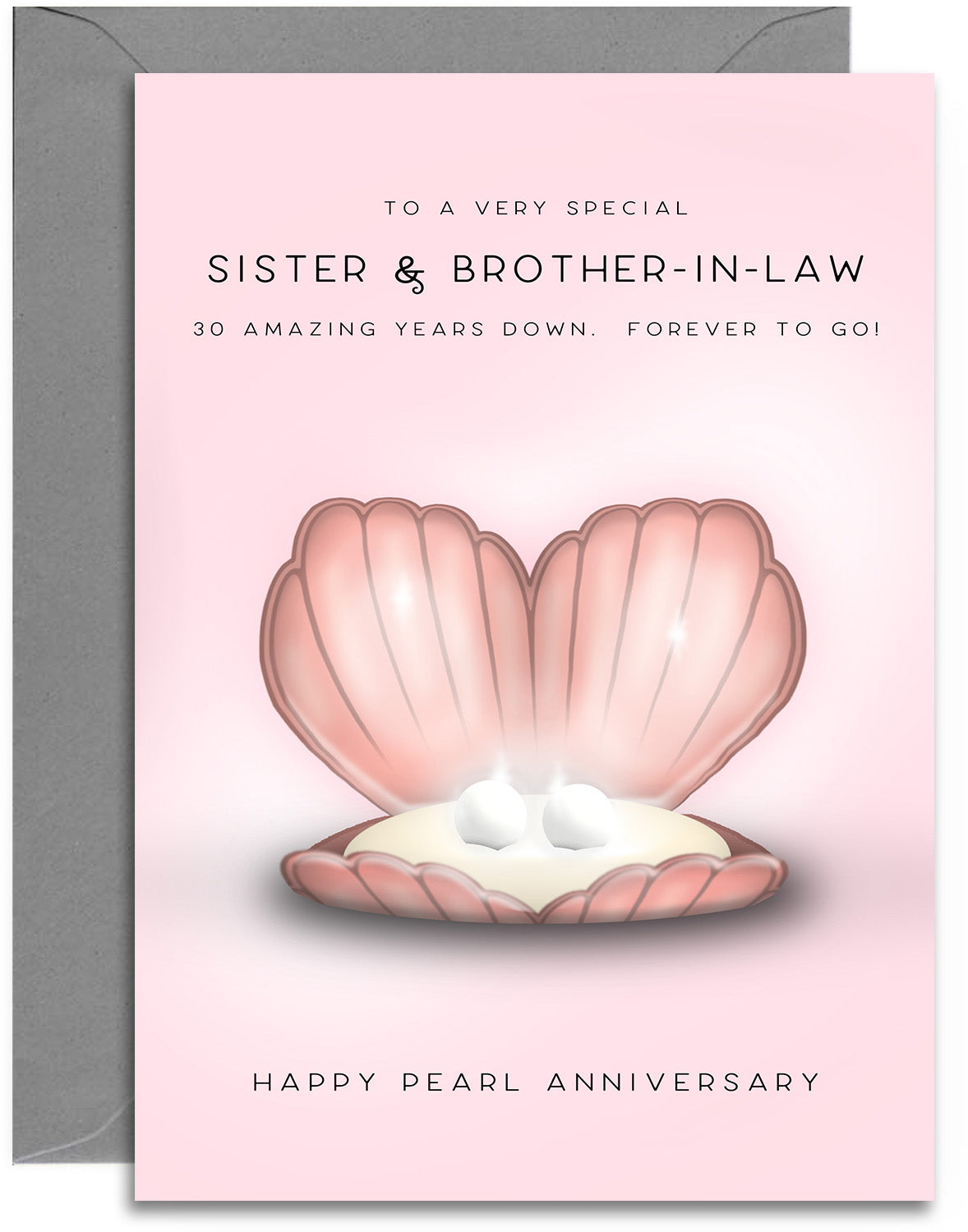 Sister & Brother-in-Law 30th Anniversary Card - Pearl Wedding Anniversary Card - Pearl Hearts Design - A5 Size Card with Grey Envelope