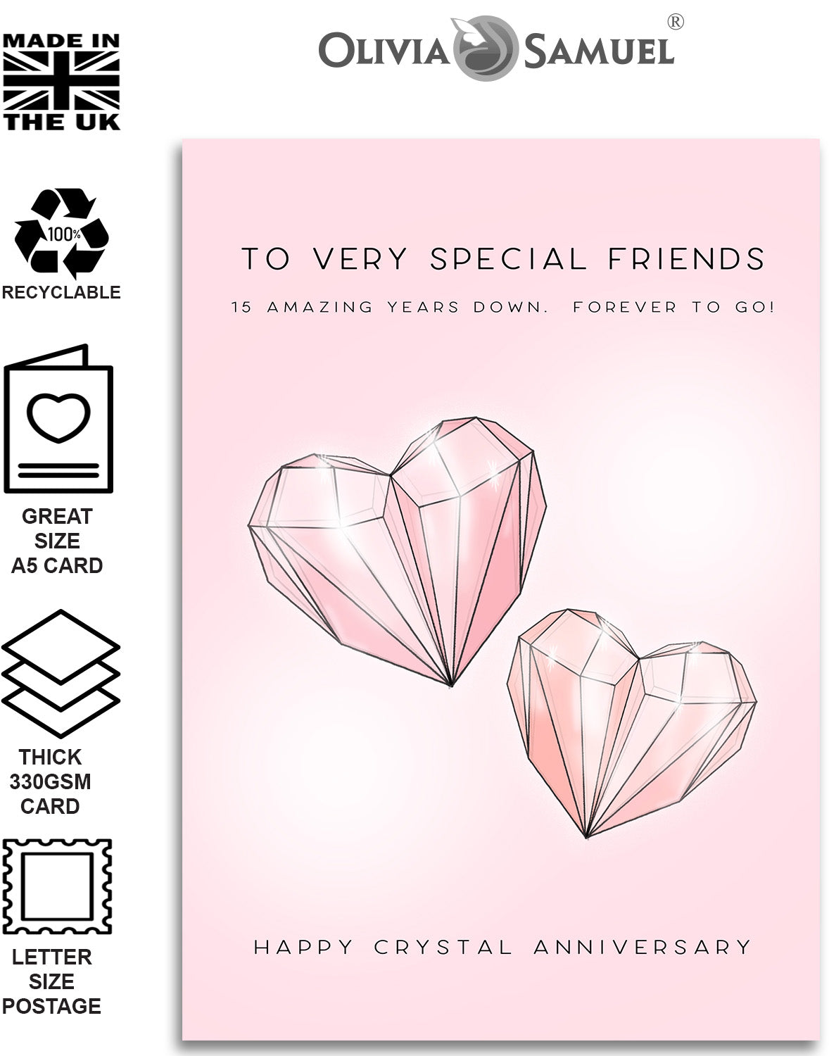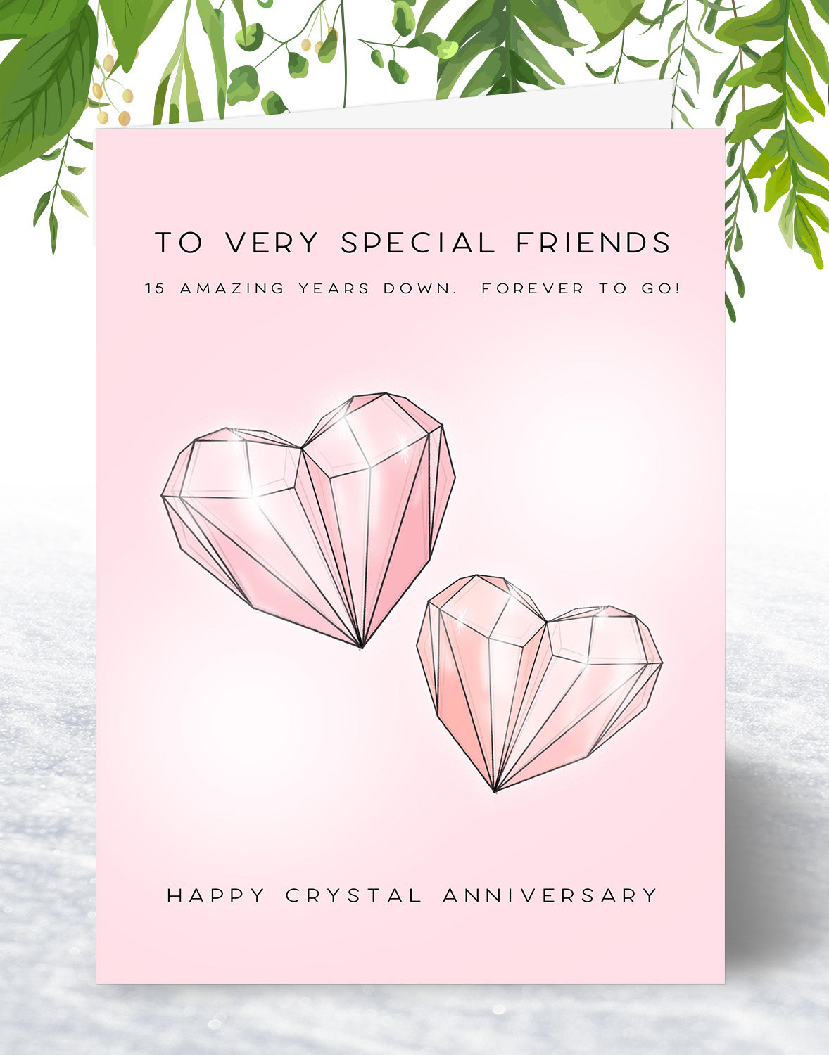 SPECIAL FRIENDS 15 YEAR ANNIVERSARY CARD ⭐ Crystal Hearts Design featuring an original Tom Price illustration.⭐ Click the second image for the text inside the card.