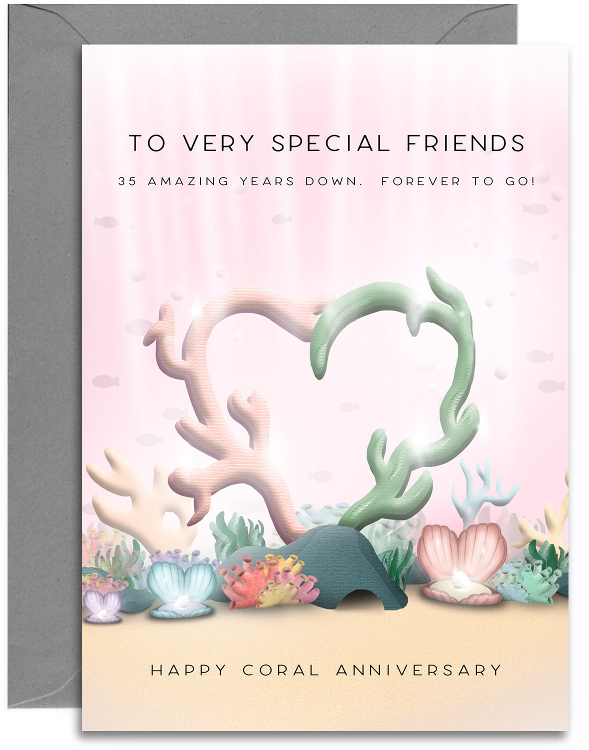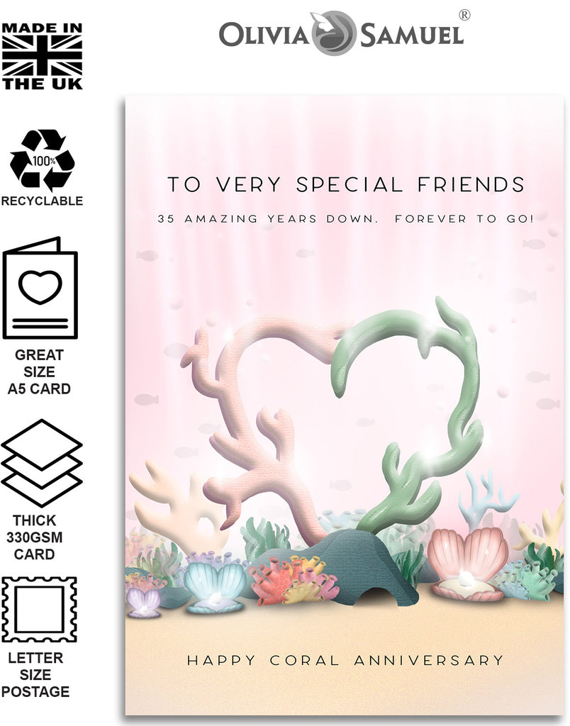 Special Friends 35th Anniversary Card - Coral Wedding Anniversary Card - Coral Hearts Design - A5 Size Card with Grey Envelope