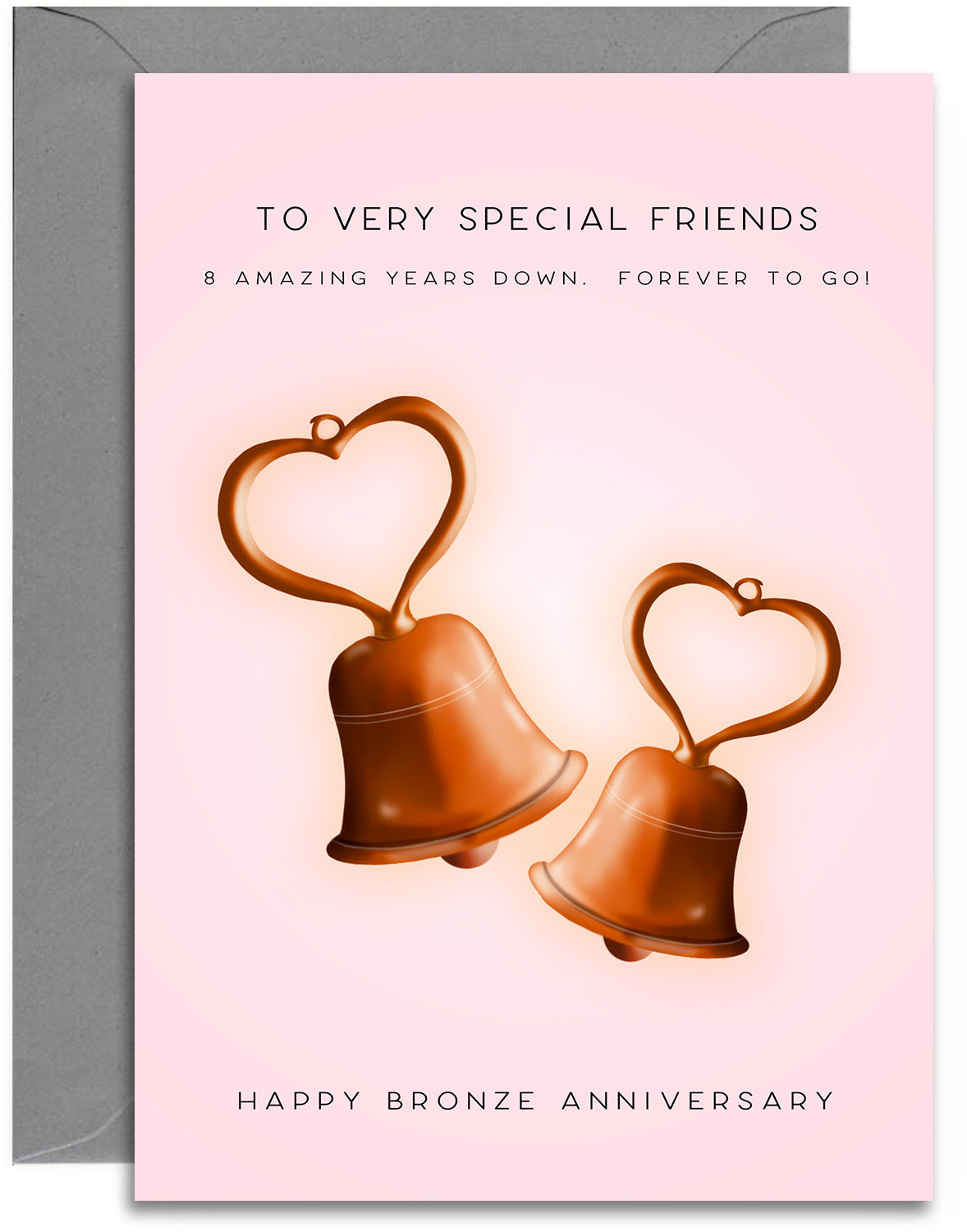 Special Friends 8th Anniversary Card - Bronze Wedding Anniversary Card - Bronze Hearts Design - A5 Size Card with Grey Envelope