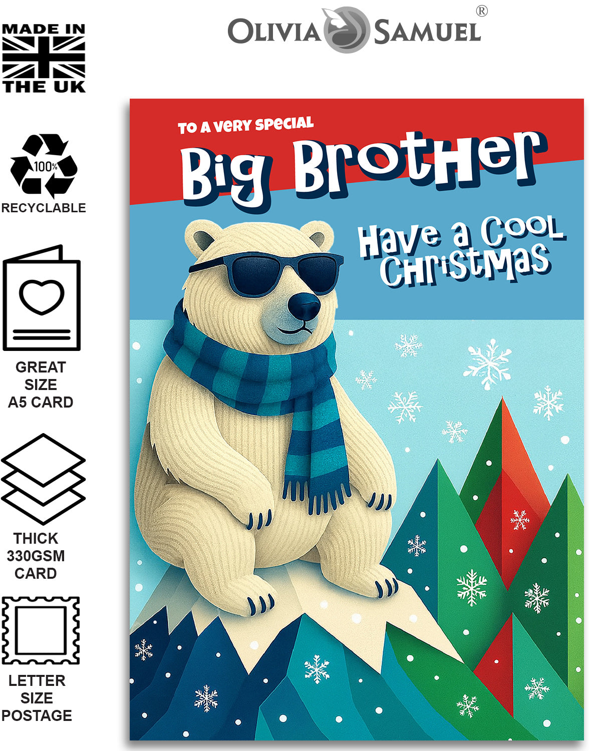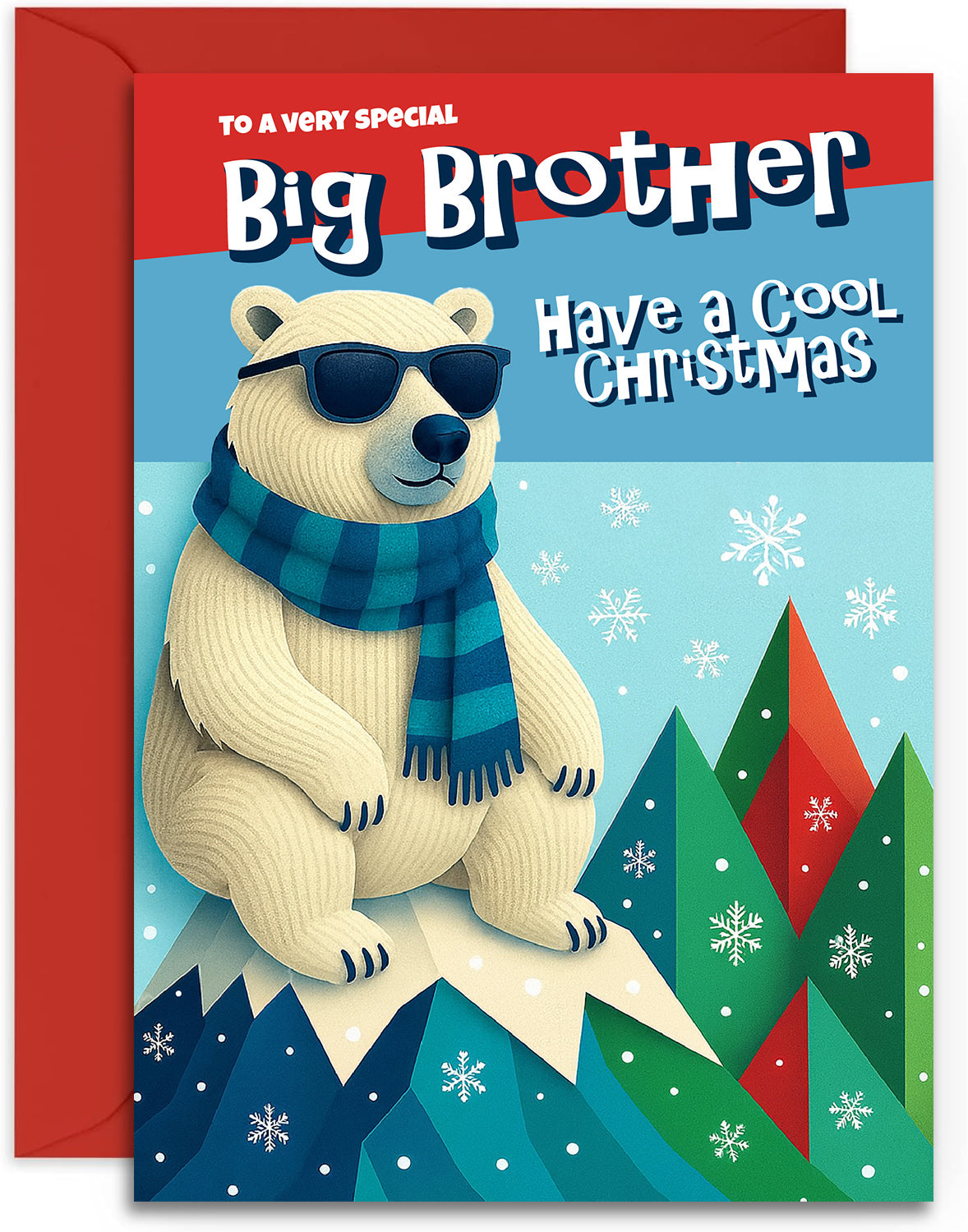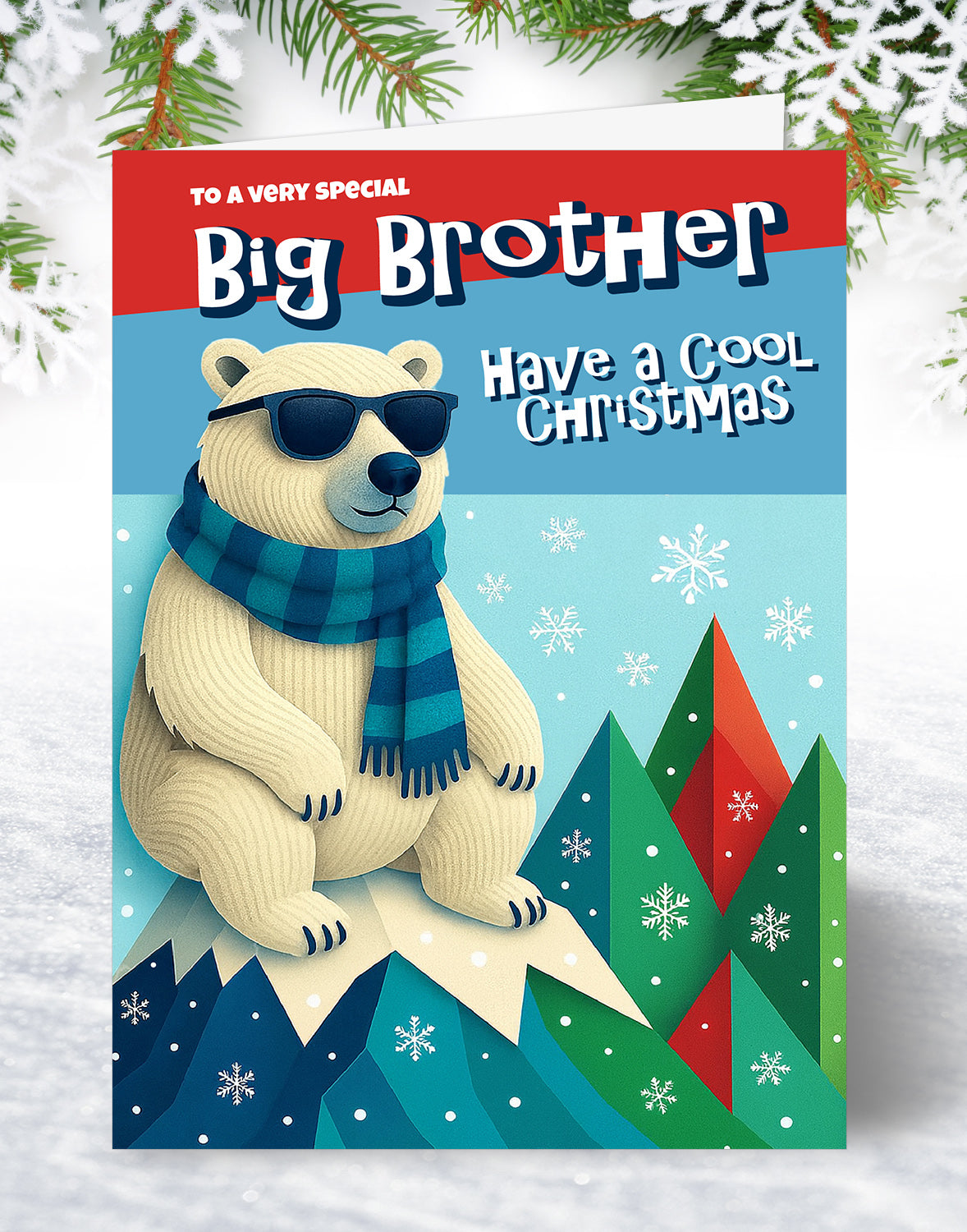 Big Brother Christmas Card - Cool Polar Bear - A5 Size Card with Red Envelope is backordered and will ship as soon as it is back in stock.