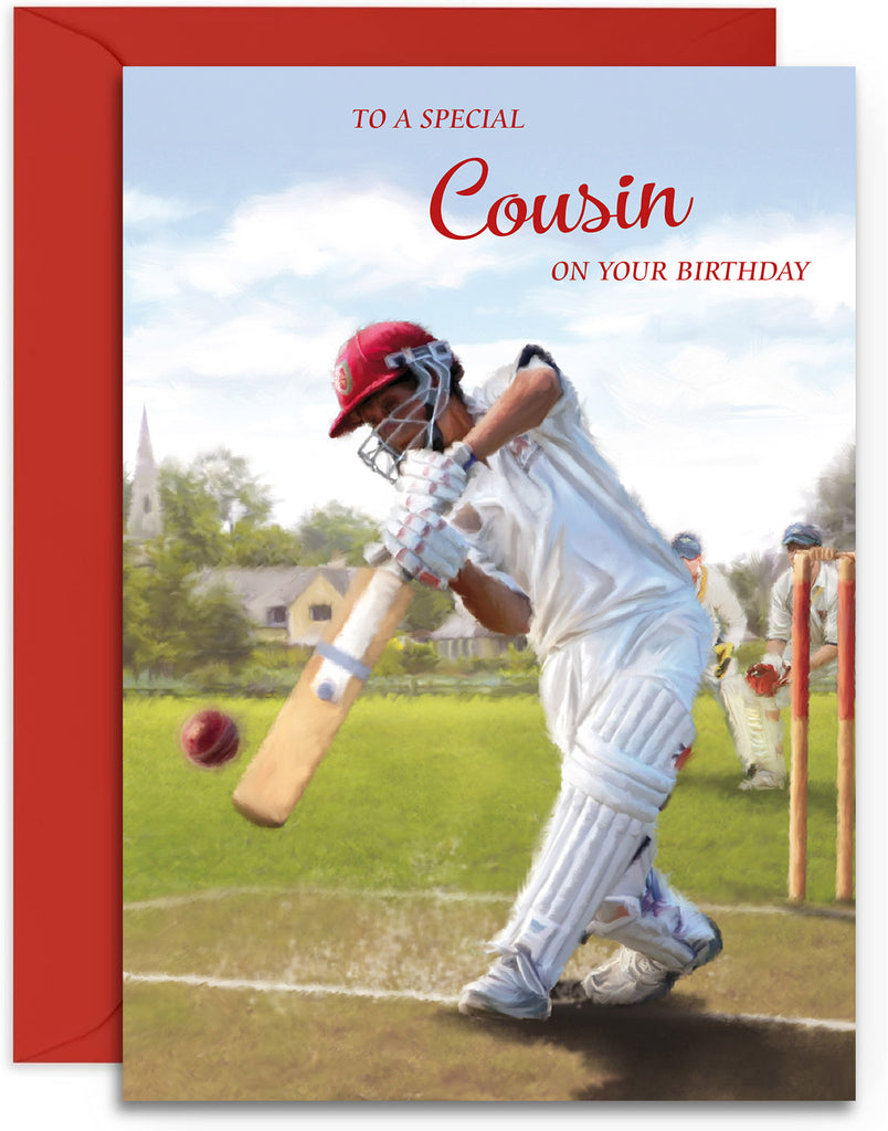 Cousin Birthday Card - Cricket Design for Him - Happy Birthday Card for Cousin - A5 Size Card with Red Envelope