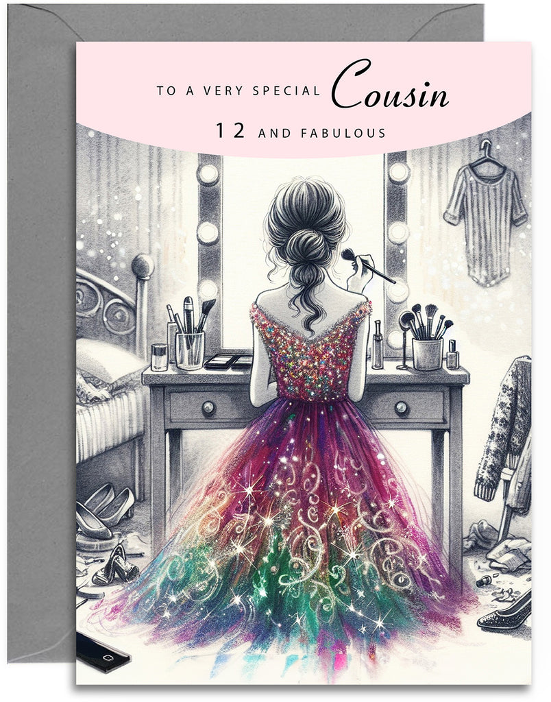 Cousin 12th Birthday Card - Elegant Birthday Card for a Special Cousin Age 12 with lovely verse inside. A5 with Grey Envelope