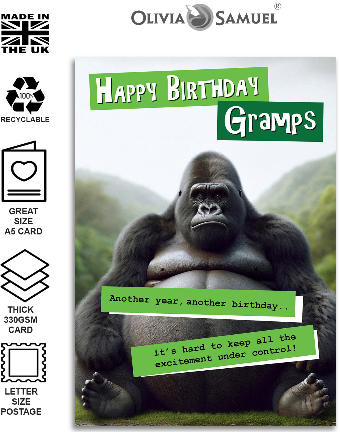 Funny Gramps Birthday Card - Grumpy Gorilla Design for Him - Fun Happy Birthday Card for Gramps - A5 Size Card with Yellow Envelope is backordered and will ship as soon as it is back in stock.