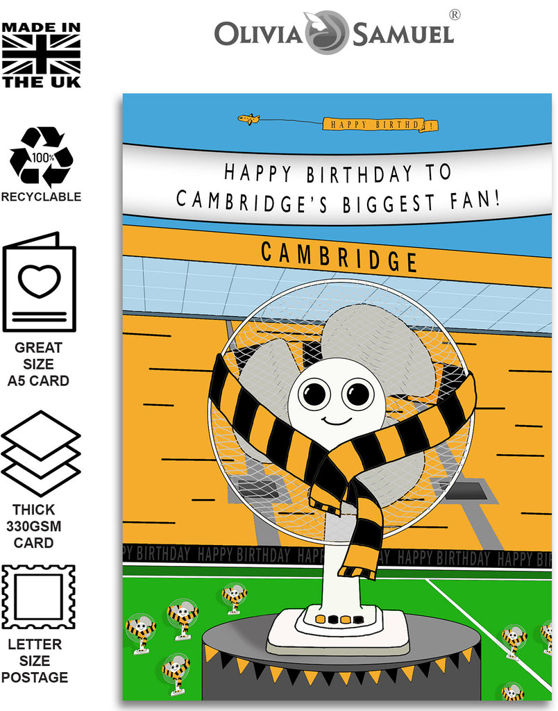 Cambridge Football Fan Birthday Card from Olivia Samuel - Medium Sized Card (A5 Size -148mm x 210mm) with Envelope