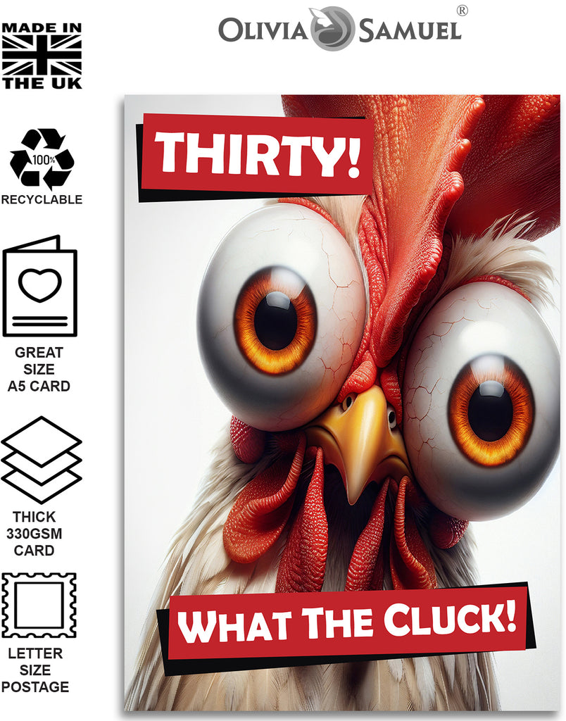 Funny 30th Birthday Card - What the Cluck - For Women Men Brother Dad Uncle Sister Friend - A5 with Red Envelope is backordered and will ship as soon as it is back in stock.
