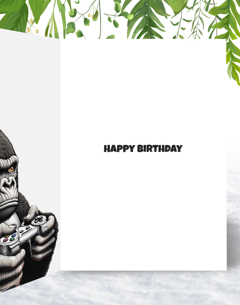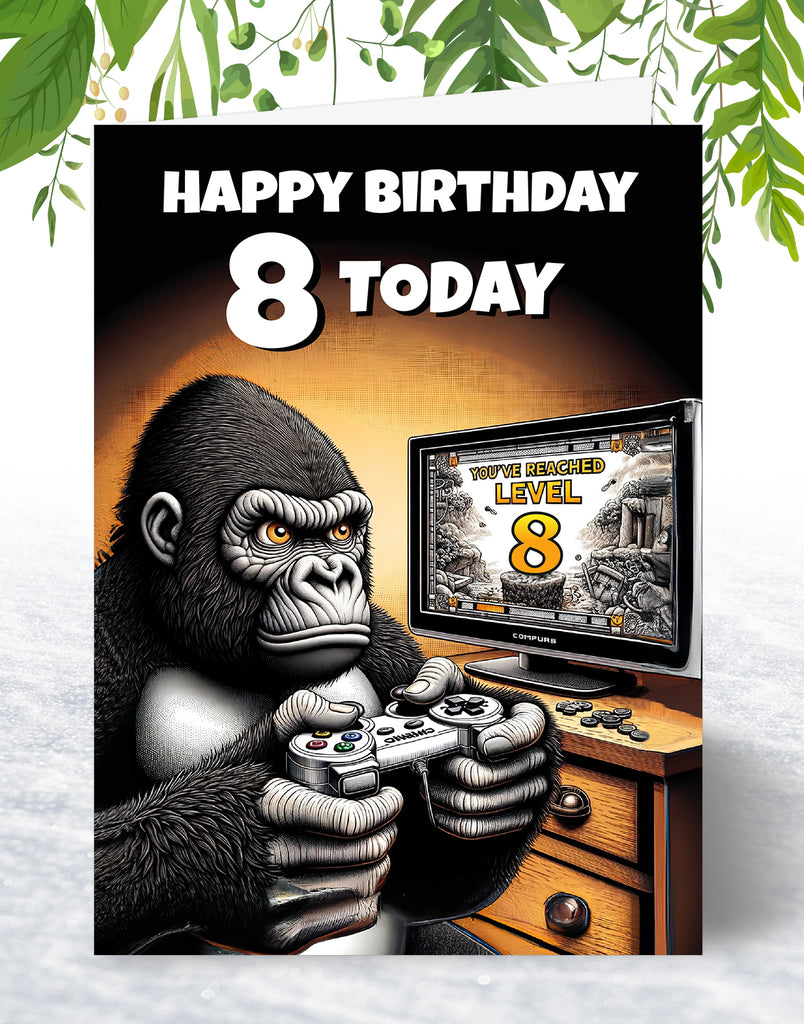 8TH BIRTHDAY CARD FOR BOY ⭐ Funny Gaming Gorilla Design ⭐ Click the second image for the text inside the card.