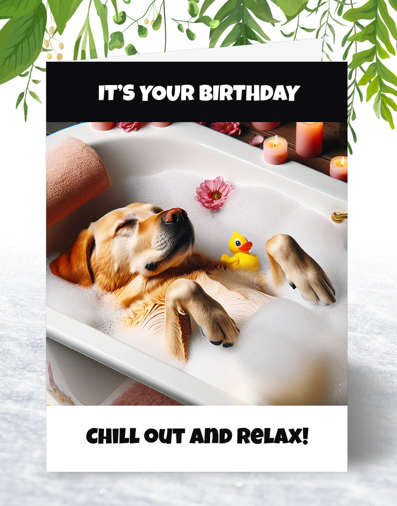 • GOLDEN LAB BIRTHDAY CARD ⭐ Chill out and Relax Design ⭐ Click the second image for the text inside the card.