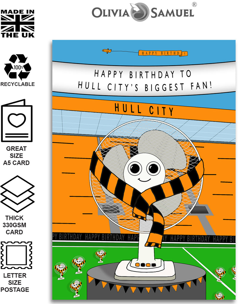 Hull Football Fan Birthday Card from Olivia Samuel - Medium Sized Card (A5 Size -148mm x 210mm) with Envelope