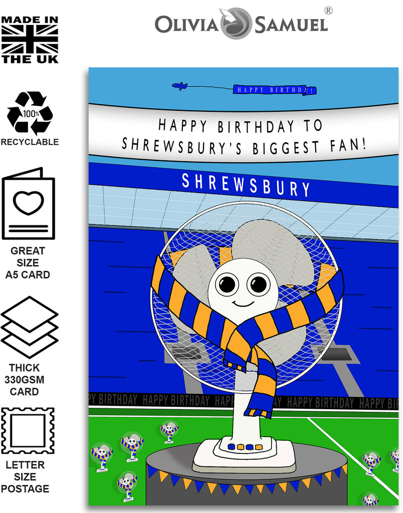 Shrewsbury Football Fan Birthday Card from Olivia Samuel - Medium Sized Card (A5 Size -148mm x 210mm) with Envelope