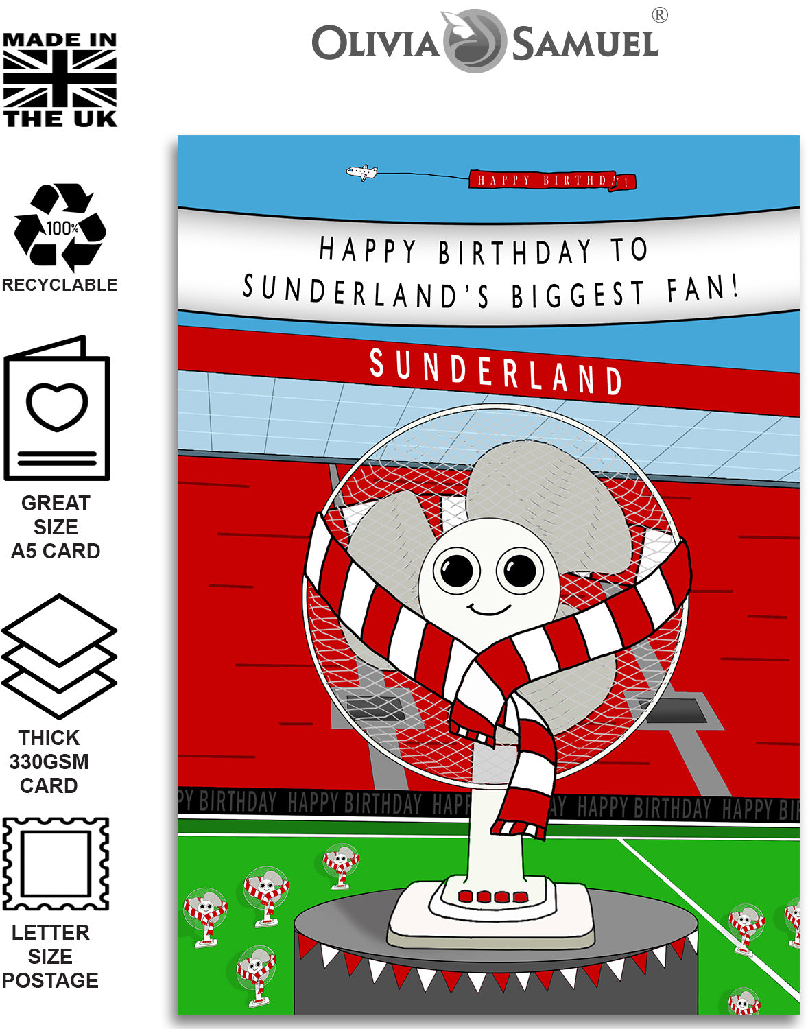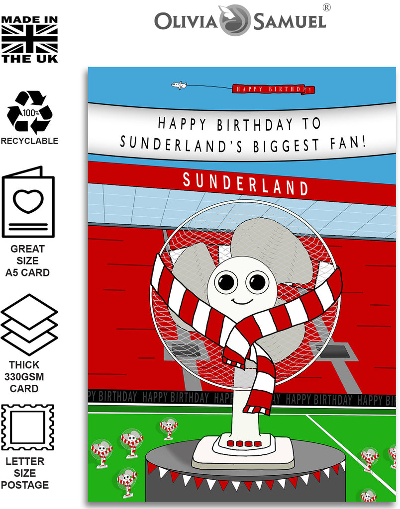 Sunderland Football Fan Birthday Card from Olivia Samuel - Medium Sized Card (A5 Size -148mm x 210mm) with Envelope