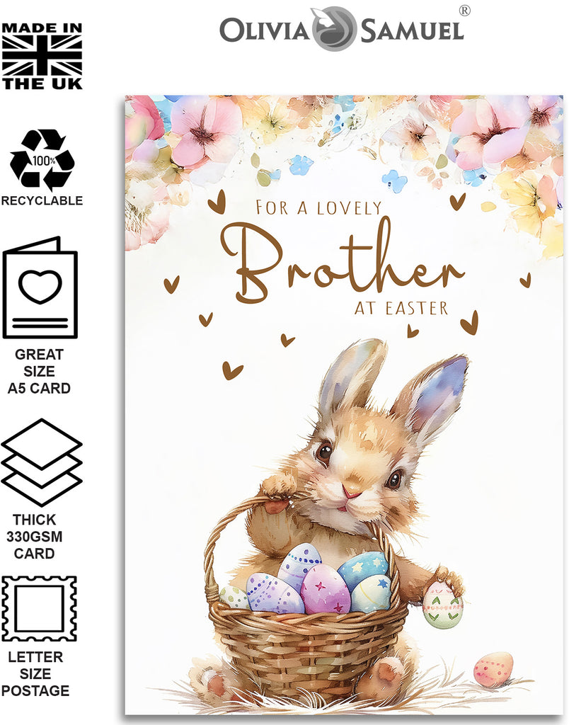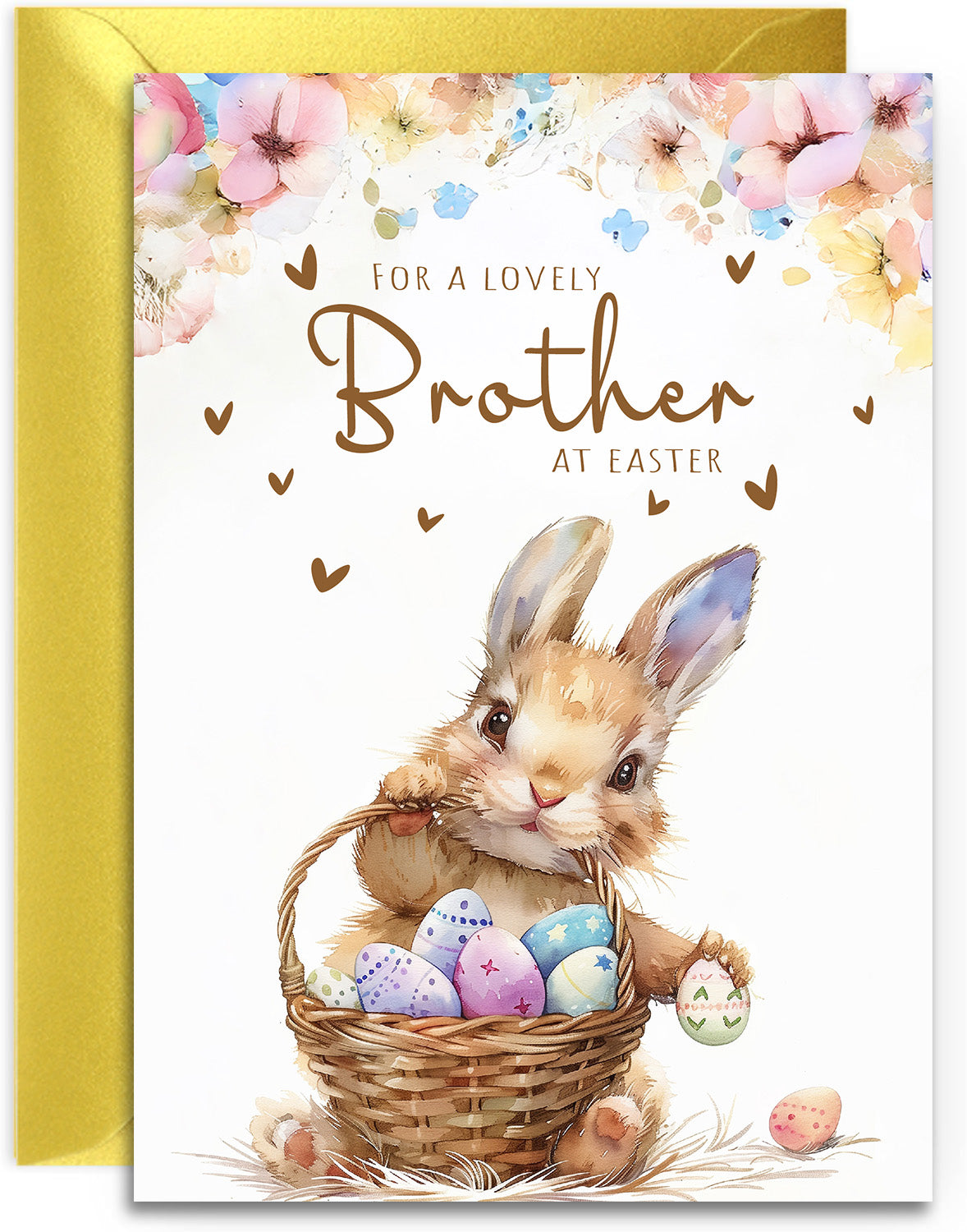 Brother Easter Card - Bunny with Easter Eggs Design - A5 Size with Gold Envelope