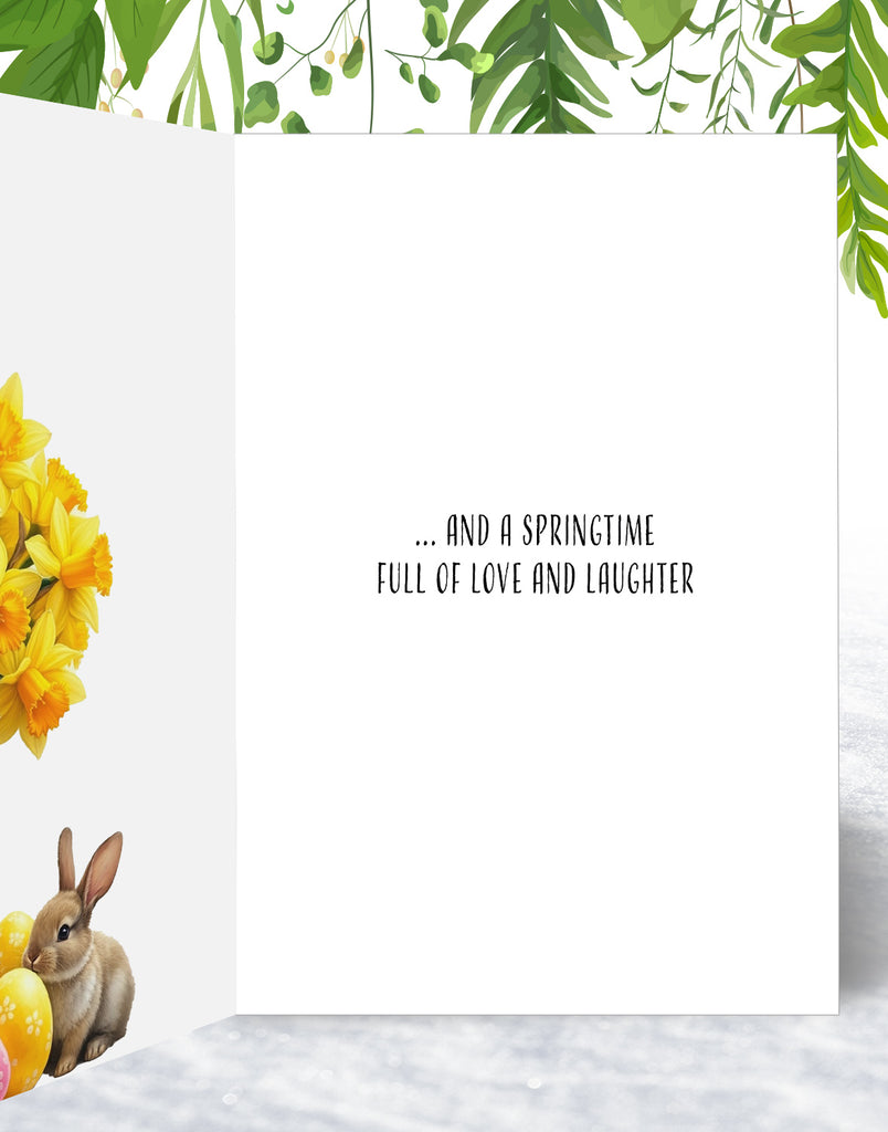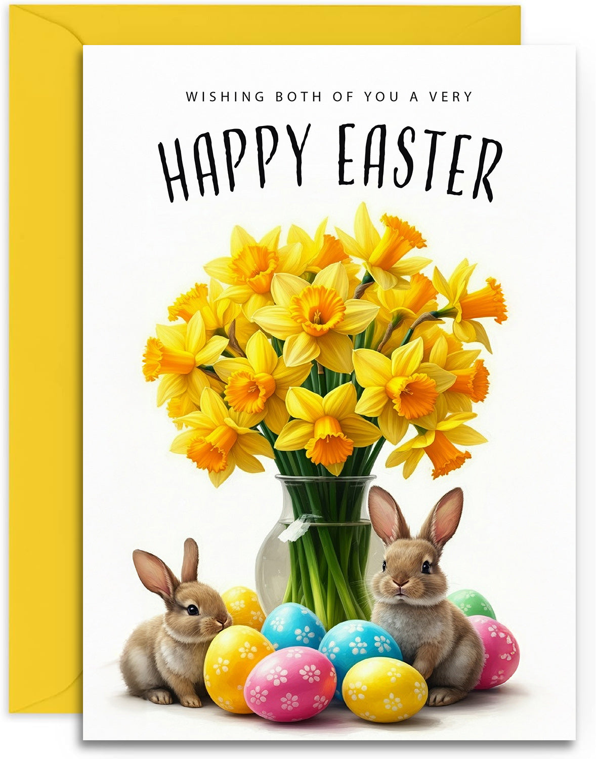To Both of You Easter Greeting Card with Bunnies and Daffodils, A5 Size, Yellow Envelope