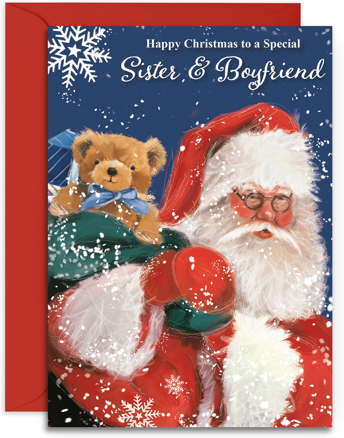 Sister & Boyfriend Christmas Card from Olivia Samuel - Santa & Ted - Medium Sized Card (A5 Size -148mm x 210mm) with Envelope